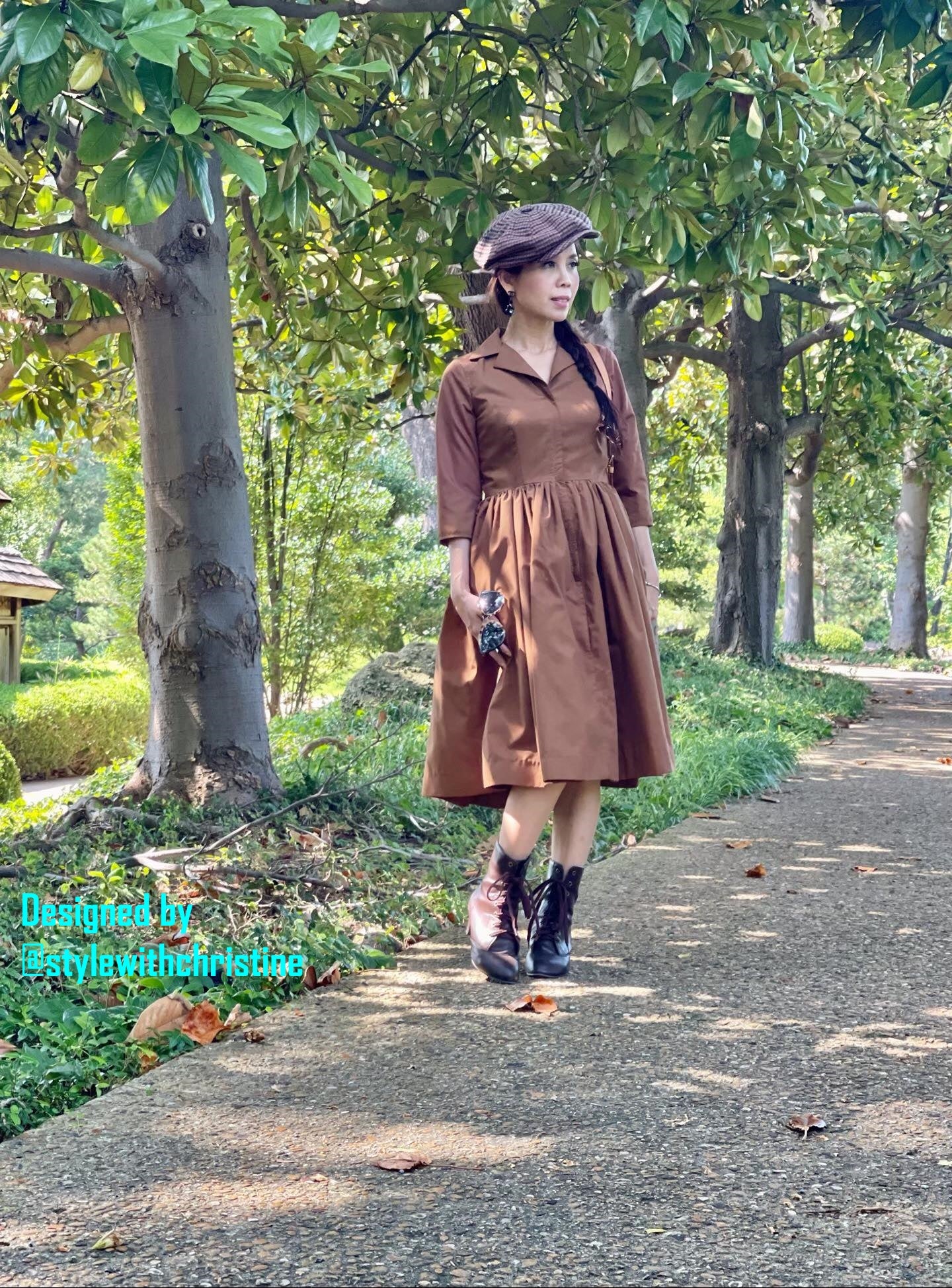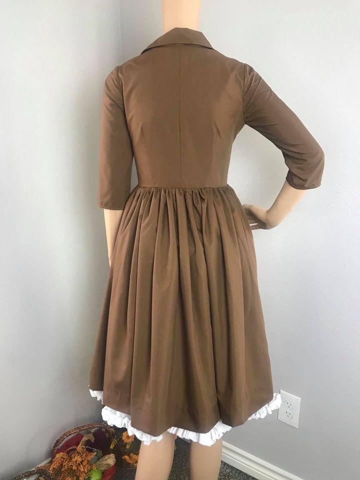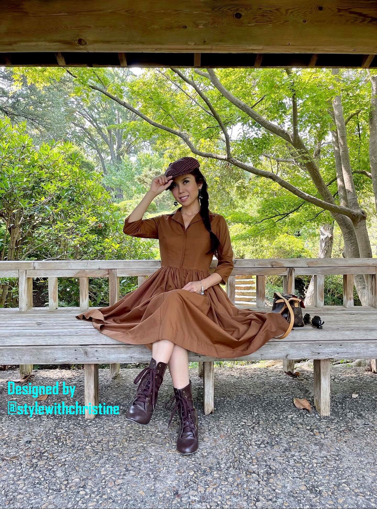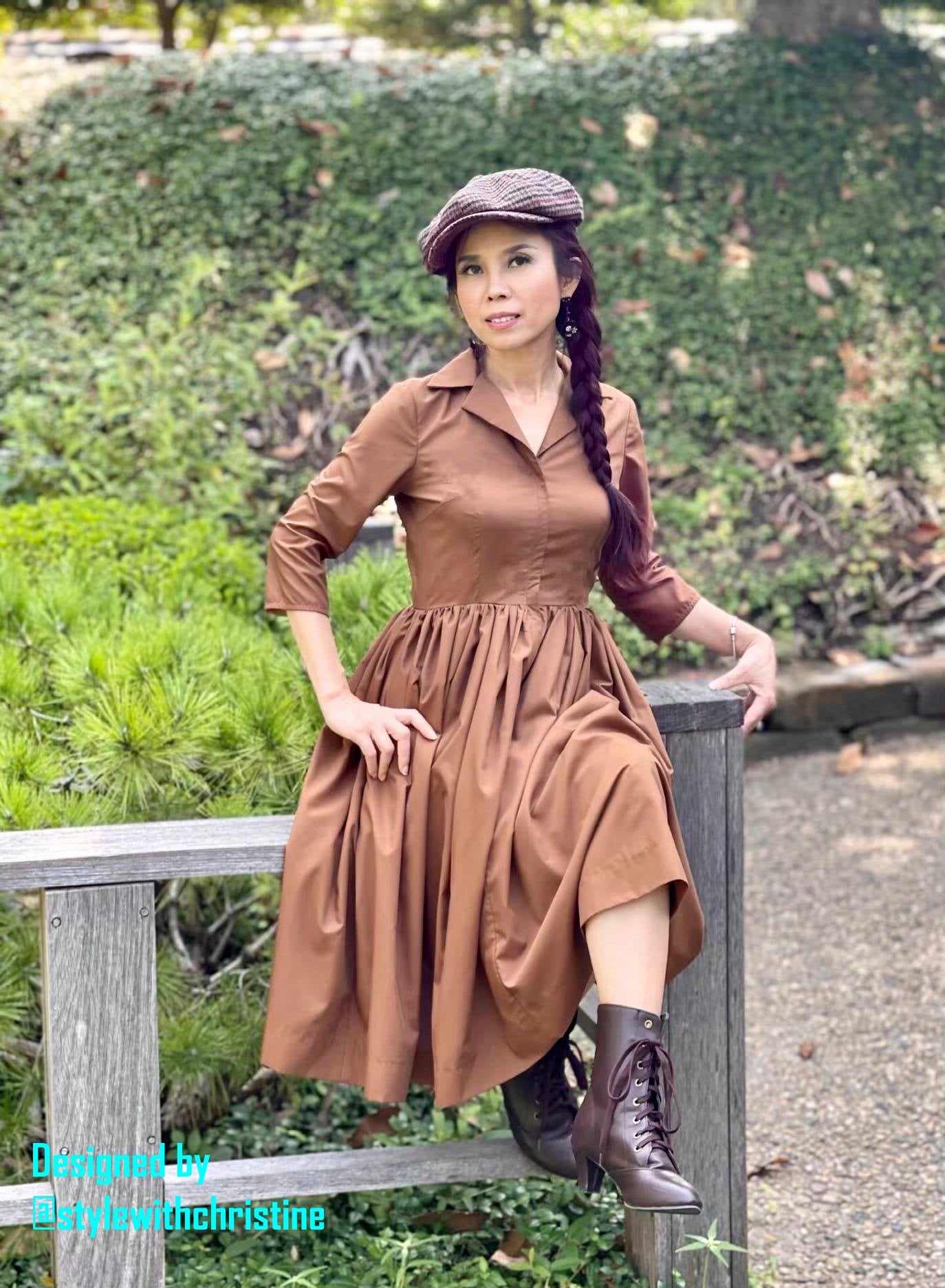 Hana Dress in Solid Camel cotton - Shop women style vintage, Audrey Hepburn jackets online -Christine
