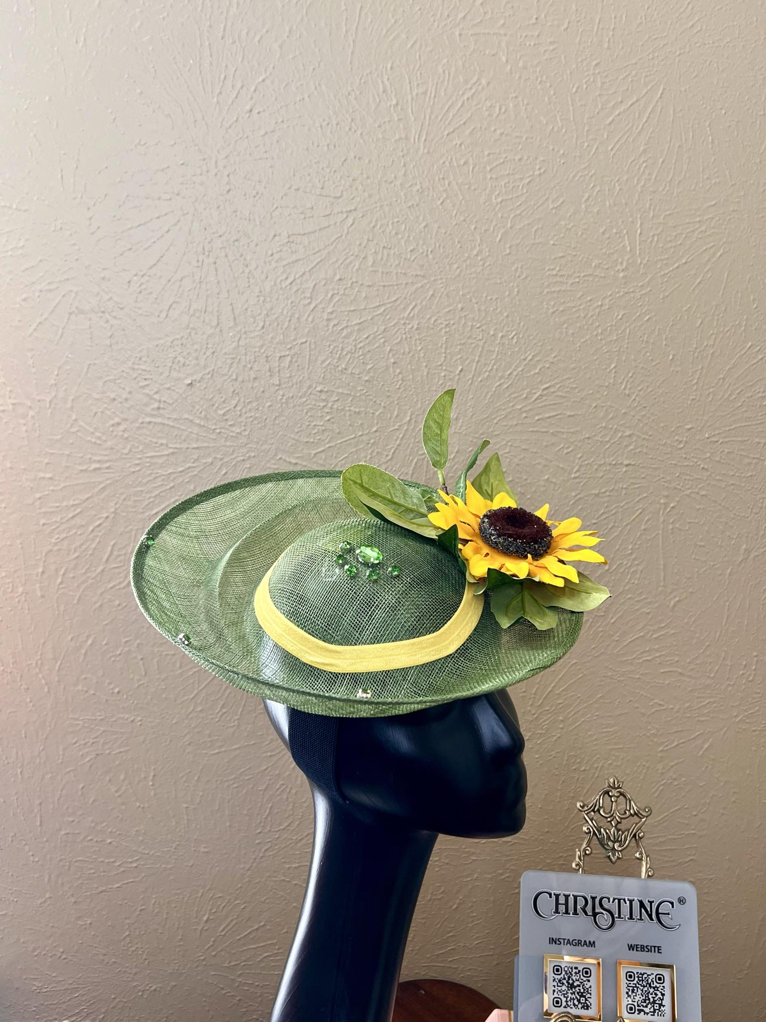 Sunflower summer hat - green rhinestones