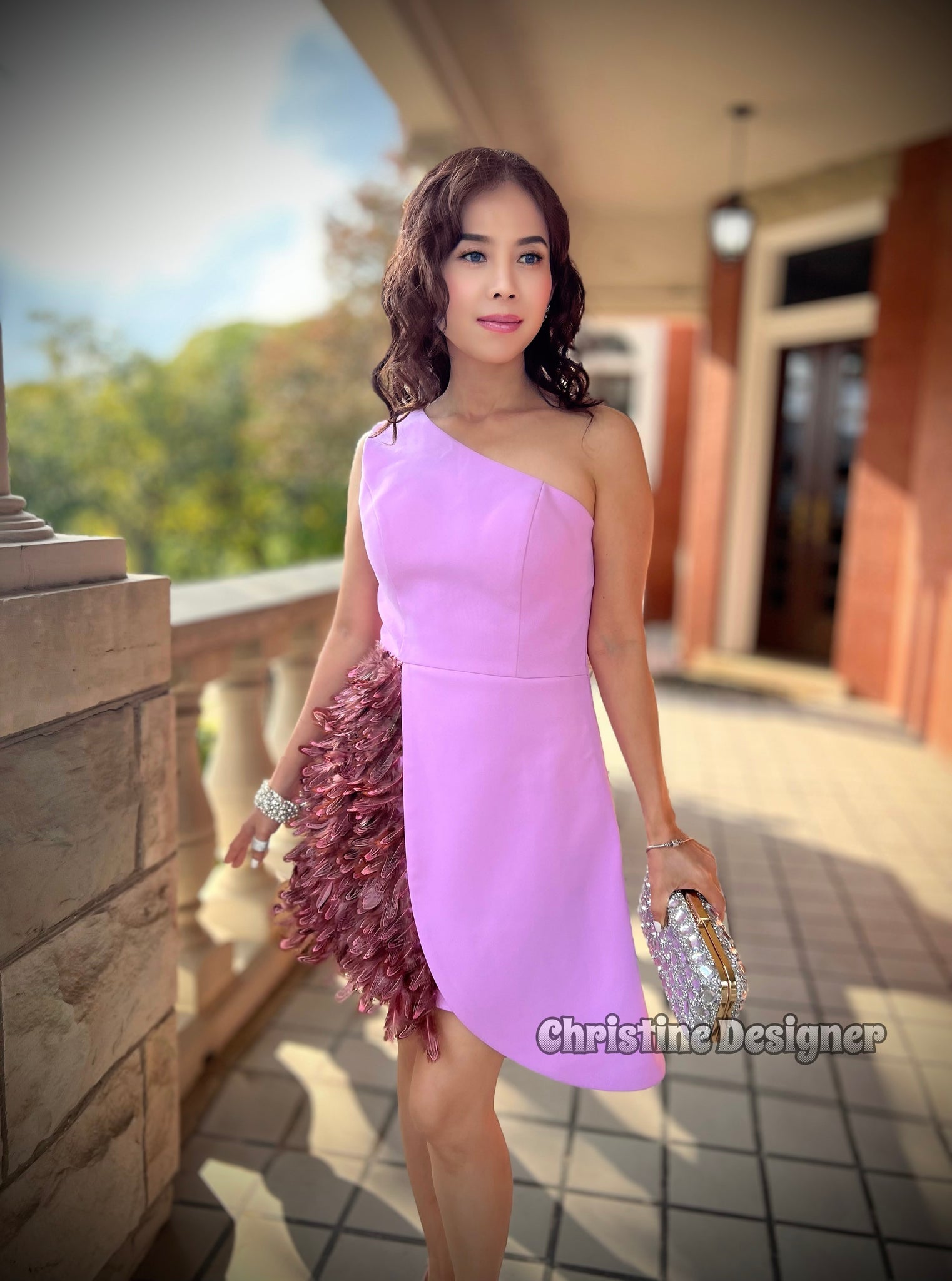♥ Feather from side waist dropping down to hem