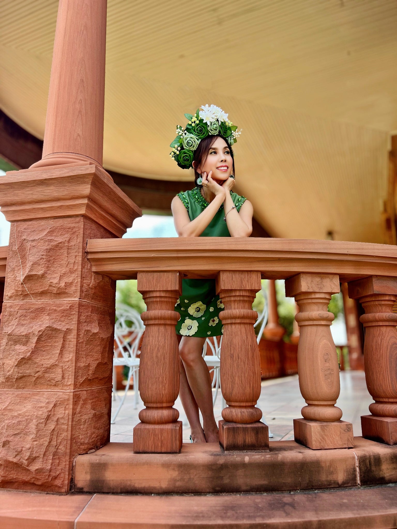 • Load image into Gallery viewer, Kira dress in green Rhinestones pearls 3D flowers