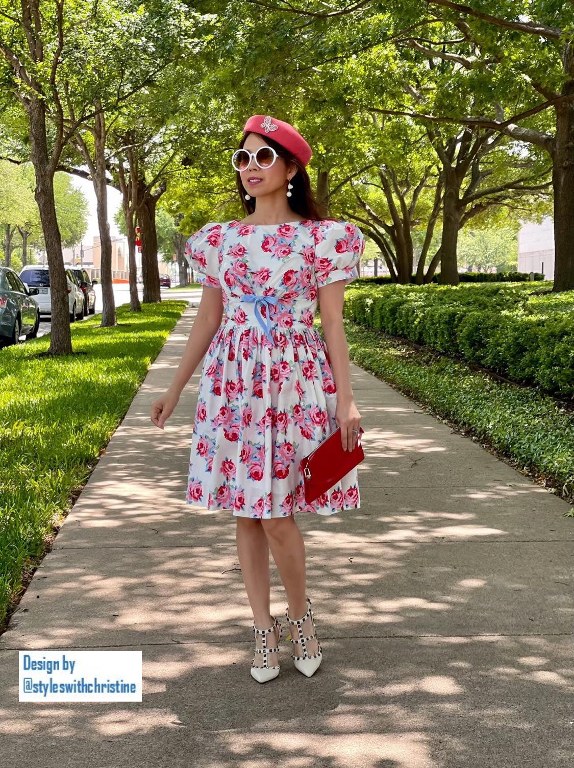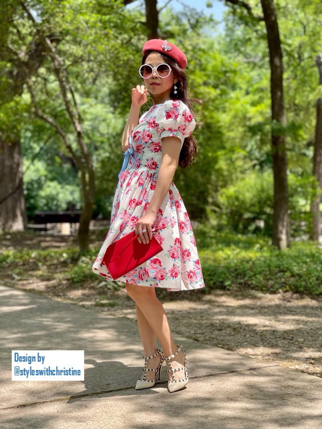 Bella Dress in Rose blooms cotton - Shop women style vintage, Audrey Hepburn jackets online -Christine