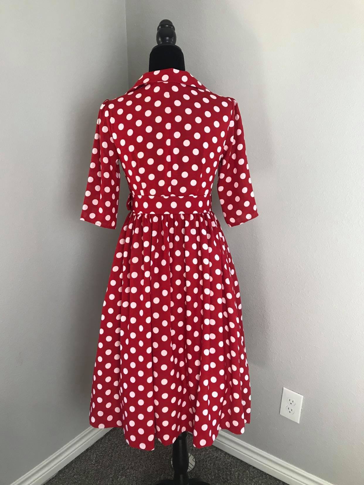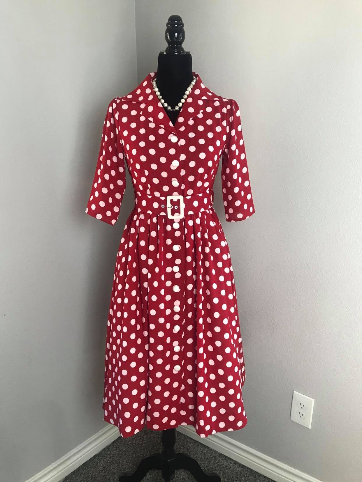 Kathy Dress in Red White Polka Dots - Shop women style vintage, Audrey Hepburn jackets online -Christine