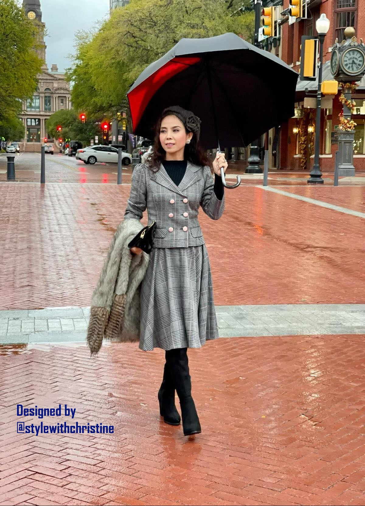 Louis Collar suit in plaid patterns - Shop women style vintage, Audrey Hepburn jackets online -Christine