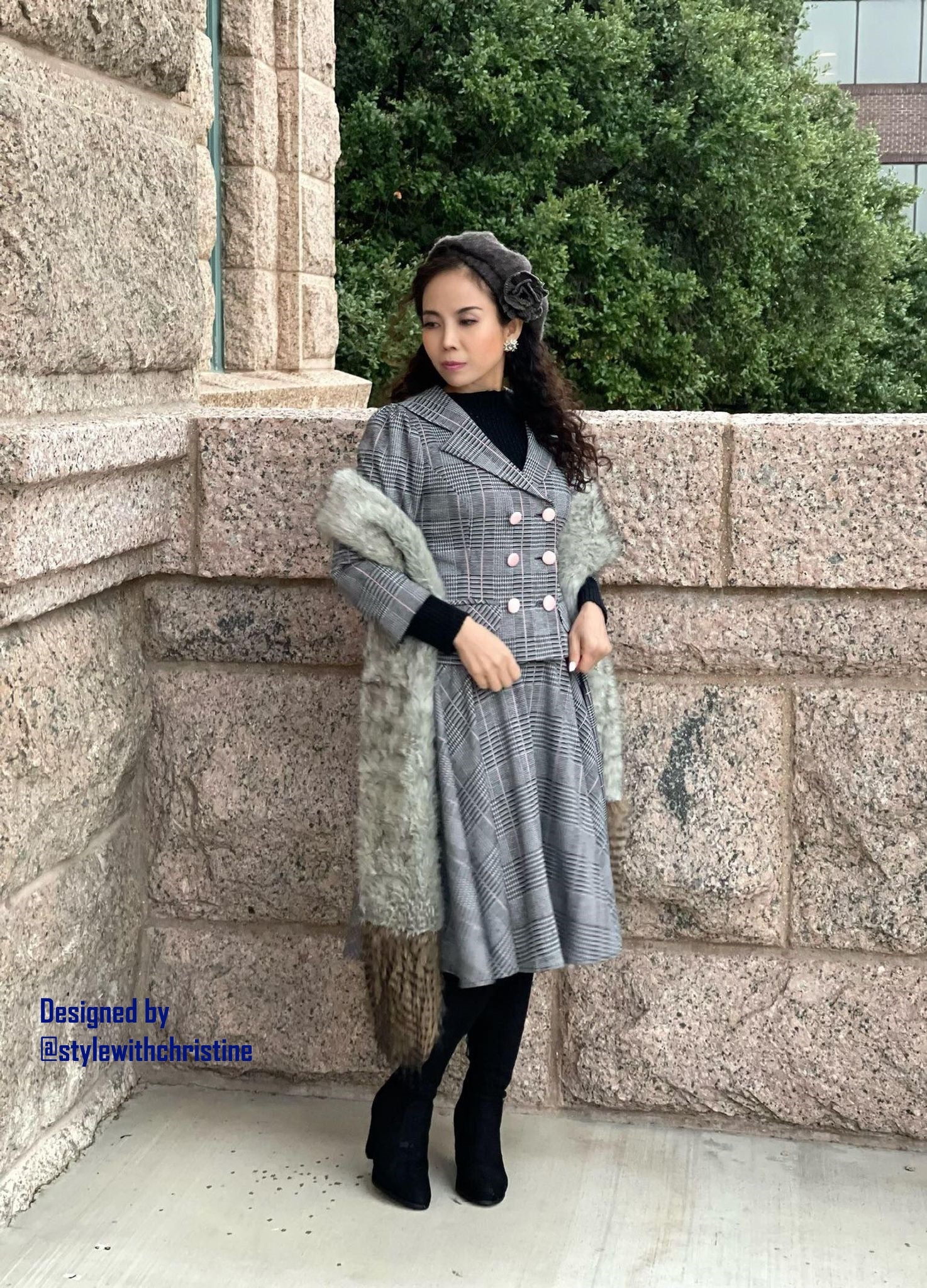 ♥ This flattering 1950s style could be worn during Fall & Winter seasons. Made in a lighter tweed