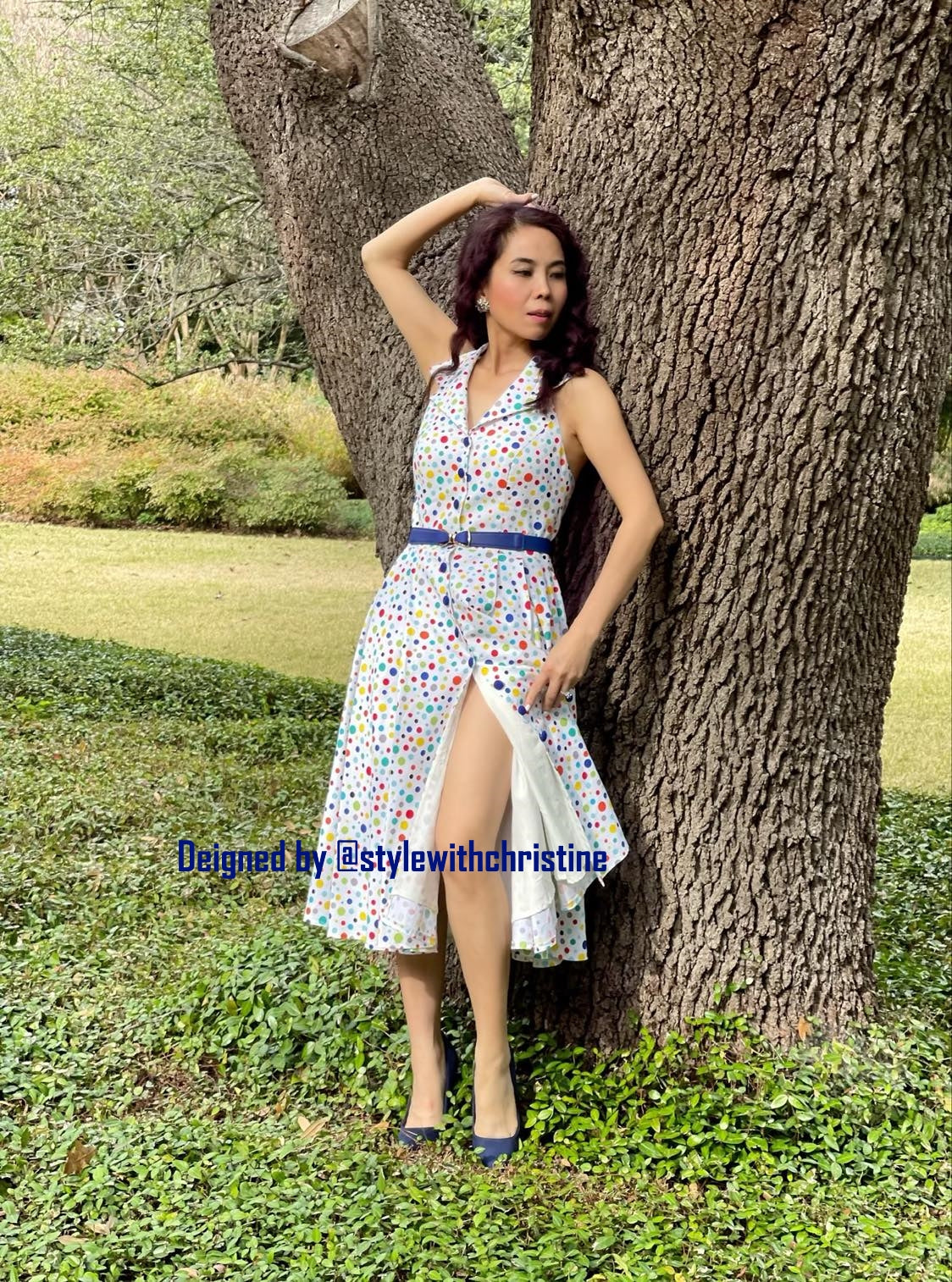 8/ S Bust: 35”, Waist 27", Bottom 38"
