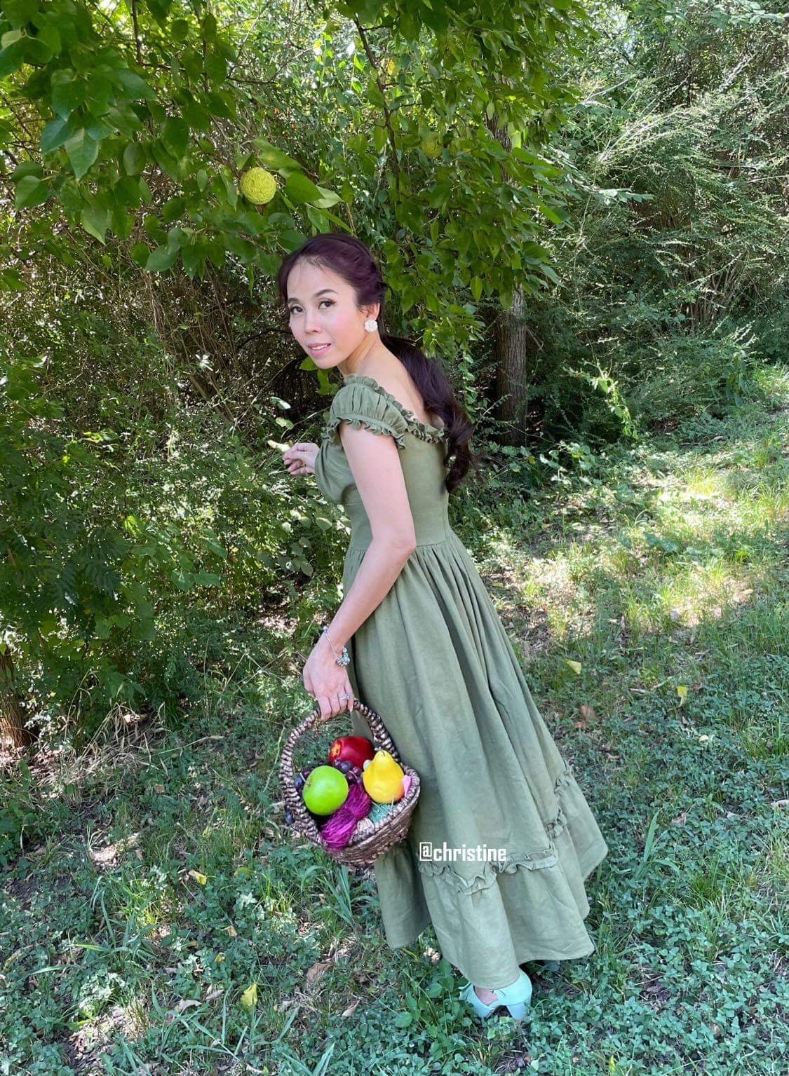 ♥ Gathered shelf bust, fitted bodice with a nipped in waist and a full gathered skirt.