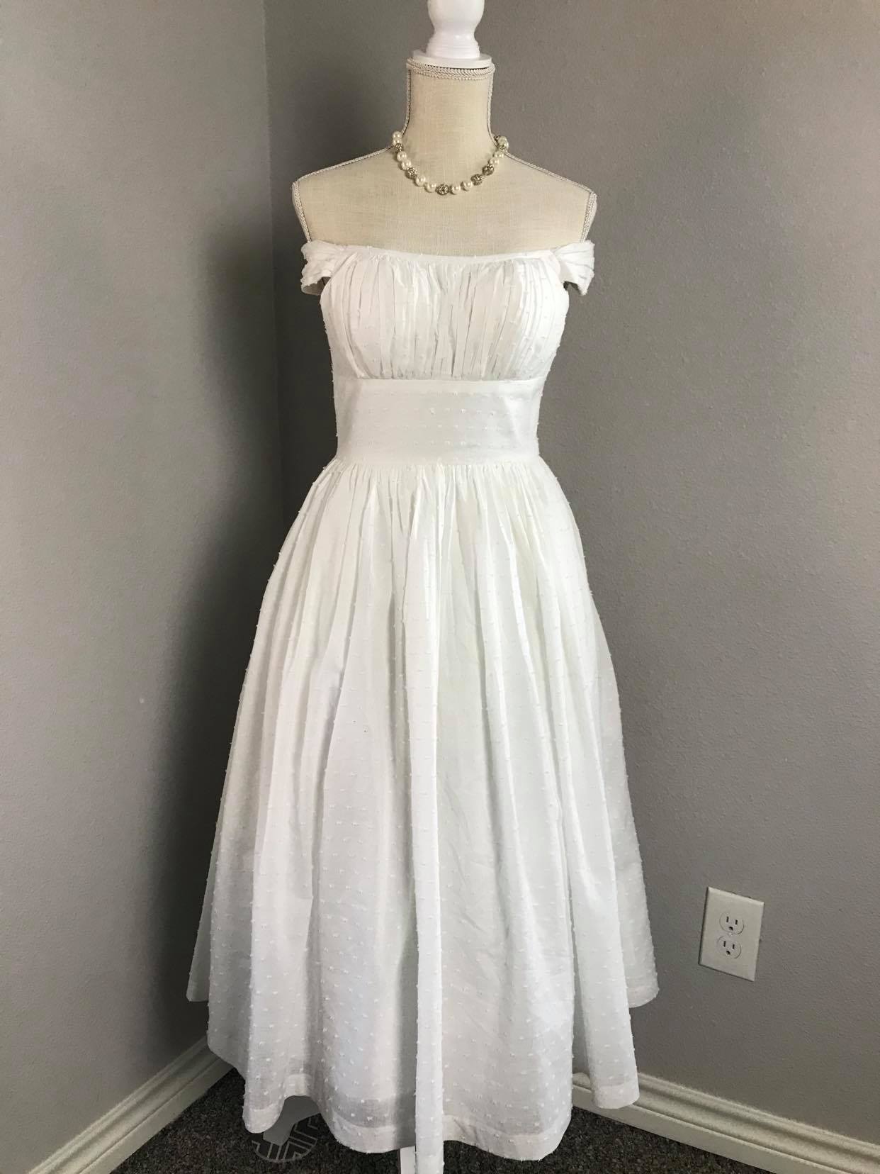 ♥ Gathered shelf bust, fitted bodice with a nipped in waist and a full gathered skirt.