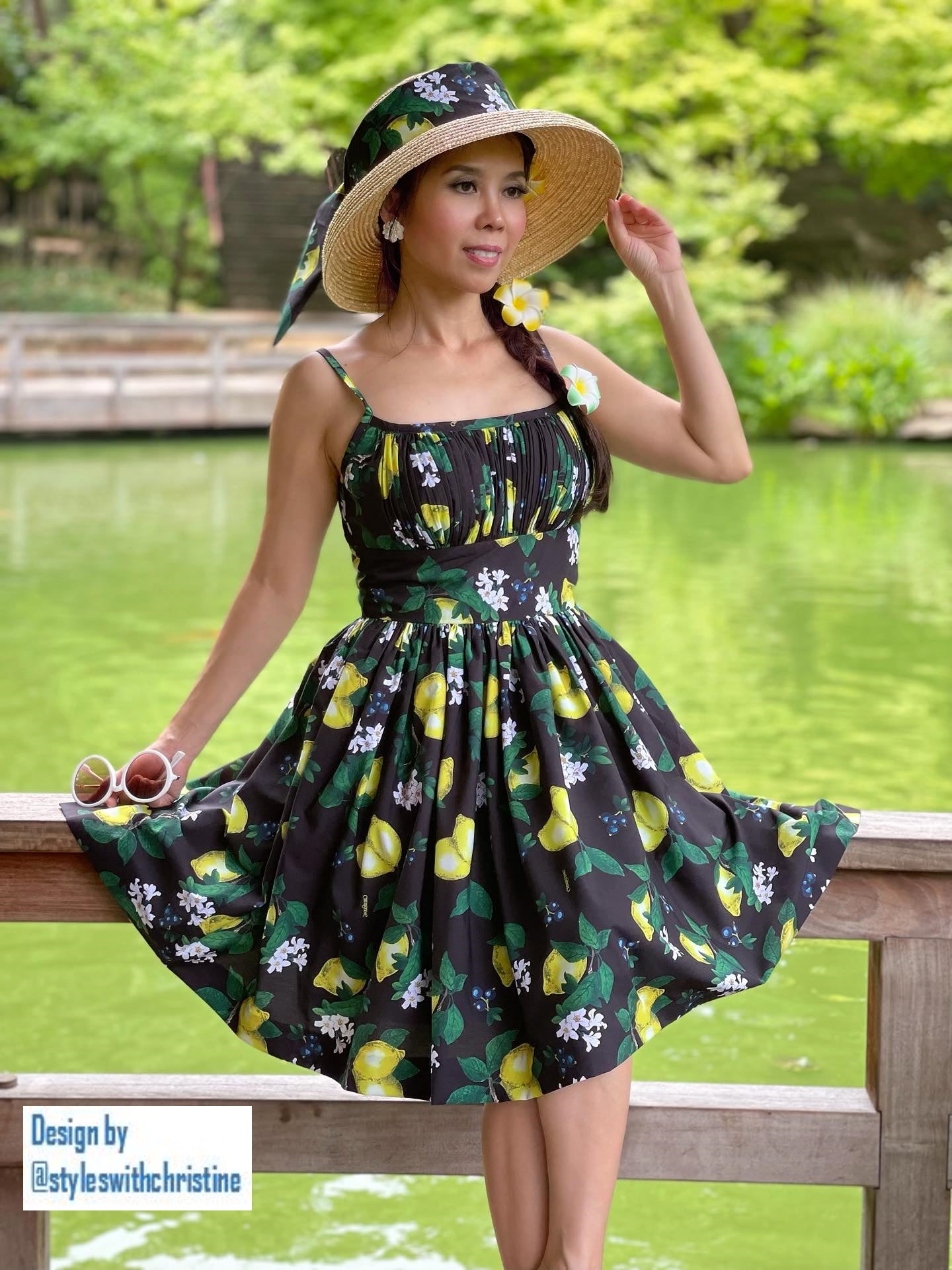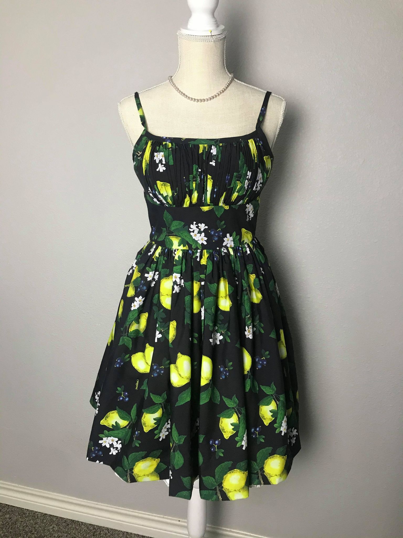 Lana Dress in lemon print cotton Size S - Shop women style vintage, Audrey Hepburn jackets online -Christine